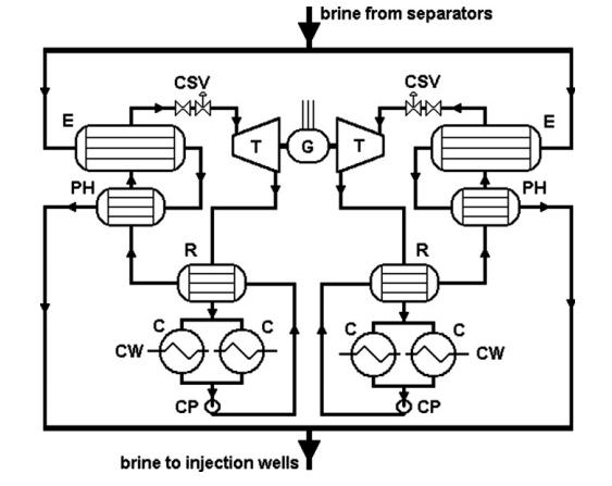 米拉瓦列斯的五號發電機組是2004年剛投入使用的。這個發電機利用從一號和二號和三號發電機組中的廢棄鹵水,通過注入井來獲取了可能回到熱儲層中的能量。總共的發電量是15.5MW,發電機組中的每一個發電單元都發出7.75MW的電。每一個發電單元是有兩個渦輪組成的,驅動同一個發電機。循環工質是常規的正戊烷,C5H12。每一個單元用兩個預熱器。兩個蒸發器跟他們各自的分隔板。兩個回熱器,四個水冷凝器。這個發電機組是有澳瑪特(Ormat)提供的。