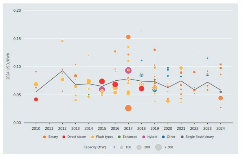 《2024年可再生能源發電成本》:2024年地熱發電成本下降16%