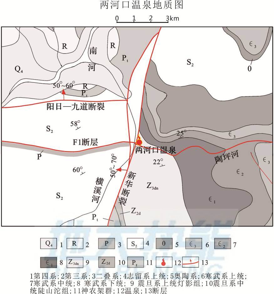 圖3 峨眉山市兩河口溫泉構造示意圖